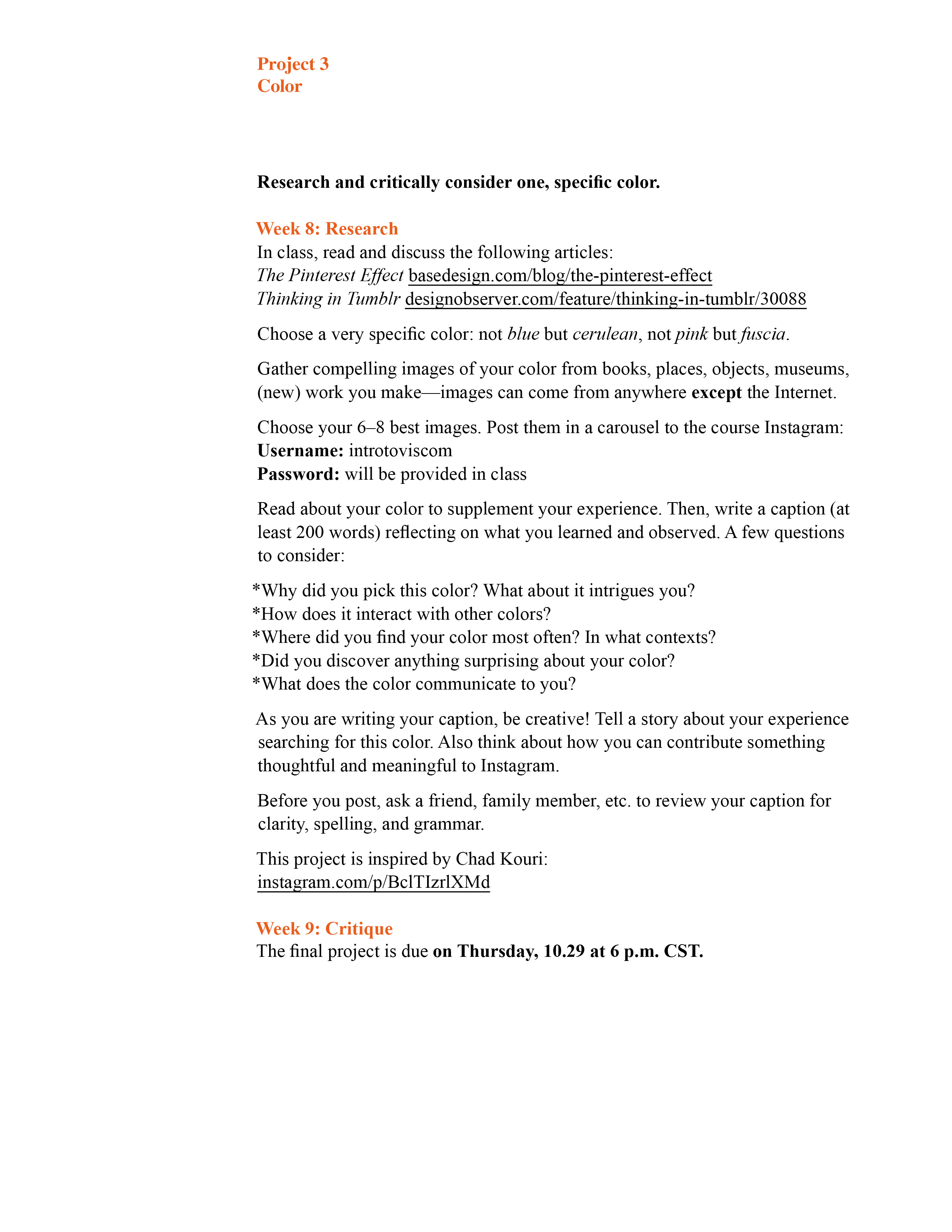 Homework — Final Project due next Thursday (9 enlarged compositions on nice paper)