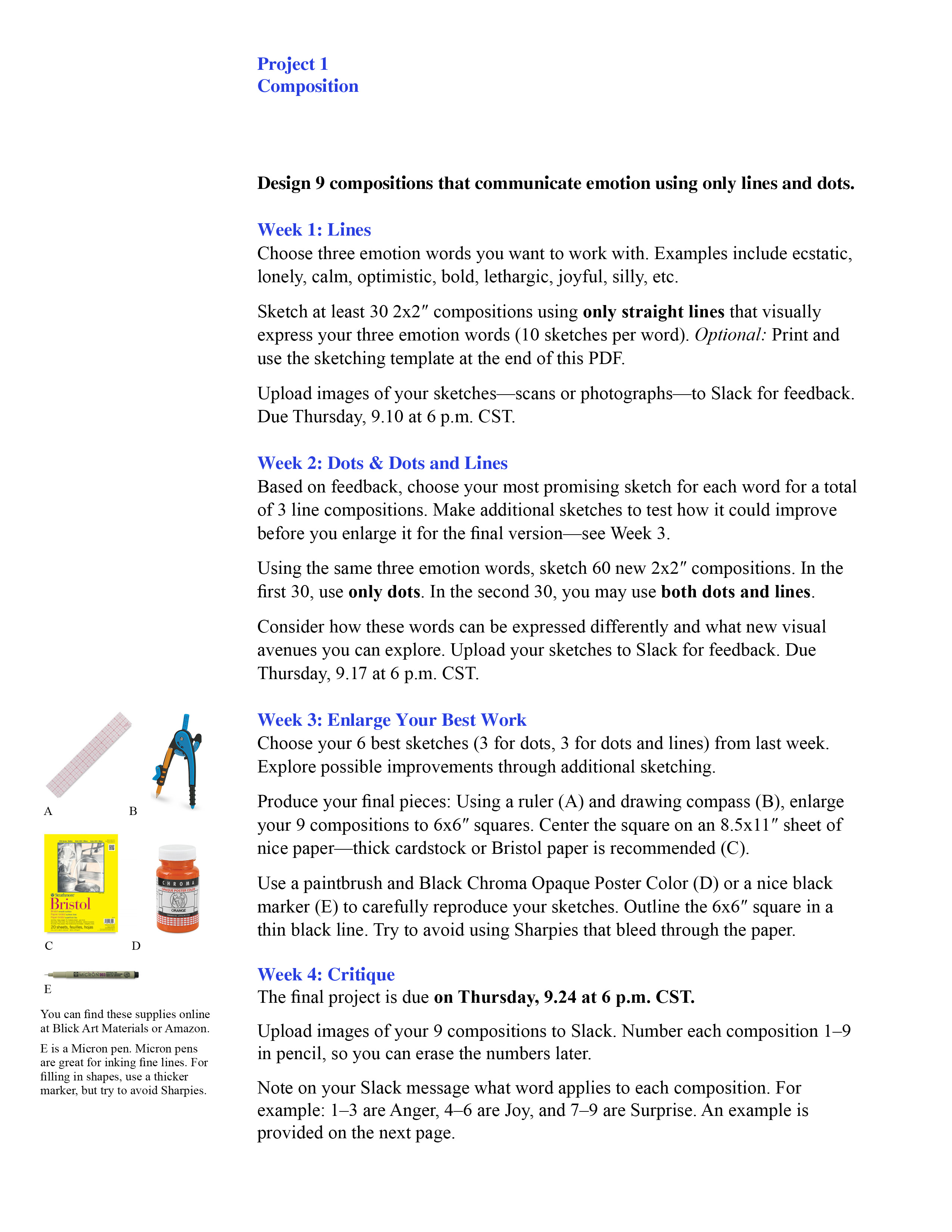 Homework — Sketches for Week 1, Lines, are due next Thursday